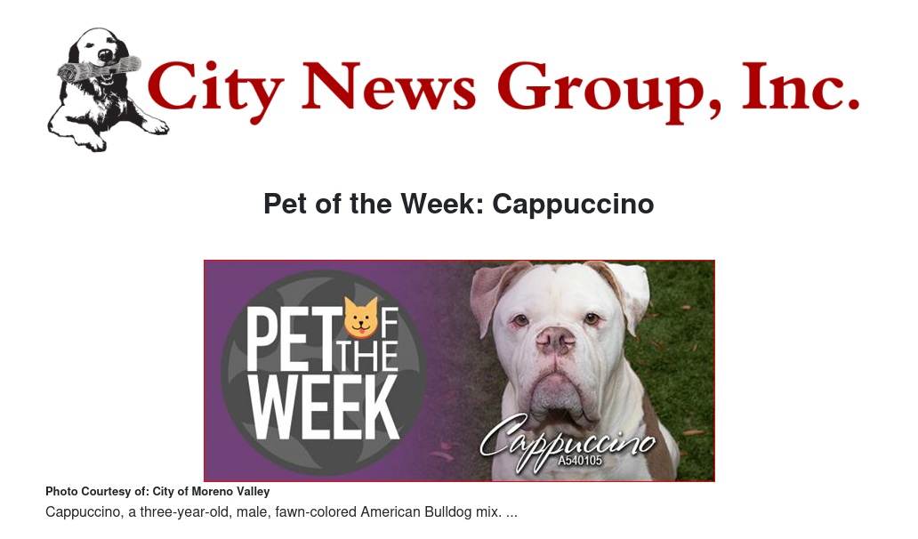 Pet of the Week: Cappuccino by William Cortez - City News Group, Inc.
