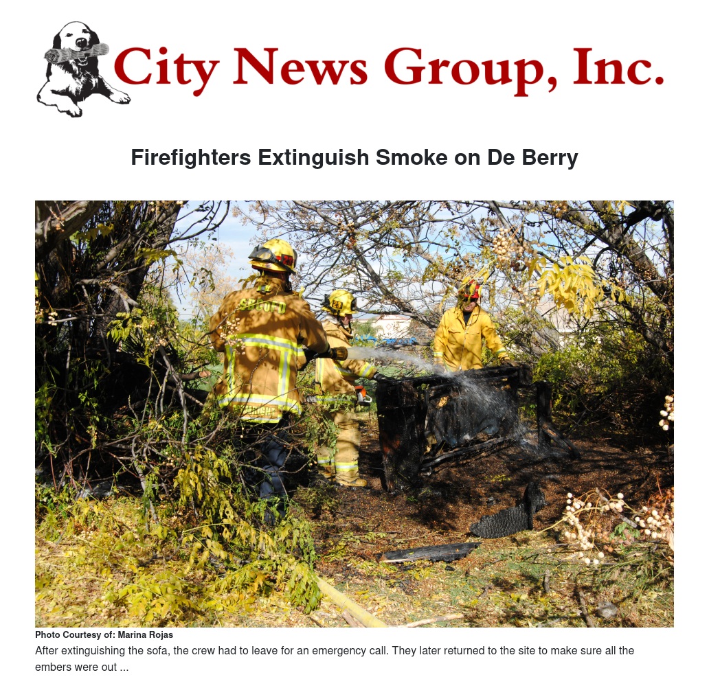 On Dec. 18, firefighters from the Grand Terrace Fire Department were on their way to a medical call at Emeritus when they saw smoke coming from a vacant lot in the 22100 block of De Berry, according to Captain Ed Noble, at the scene.