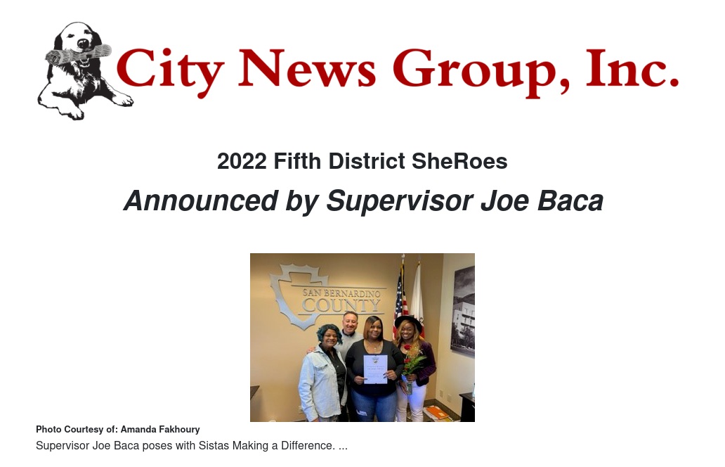 San Bernardino County Fifth District Supervisor Joe Baca, Jr. is happy to announce the 2022 SheRoes recipients in honor of Women’s History Month. The women selected are members of our Fifth District community, in their respective fields who have dedicated countless hours to improving the lives of others. The women who have been chosen to be the recipients of the 2022 SheRoes of the Fifth are: