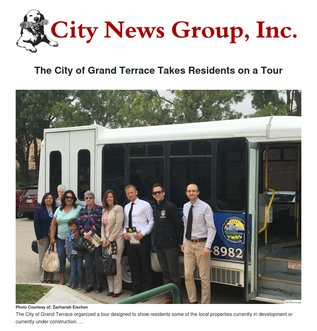 GRAND TERRACE>> On Tuesday, May 16, The City of Grand Terrace organized the Midas Bus Tour, a tour designed to show residents some of the local properties that are either in the process of being developed are all already seeing construction.