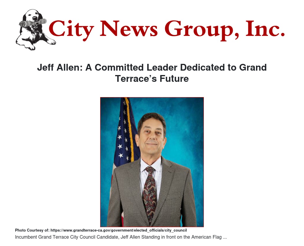 Jeff Allen: A Committed Leader Dedicated to Grand Terrace’s Future by Stella Pierce - City News Group, Inc.