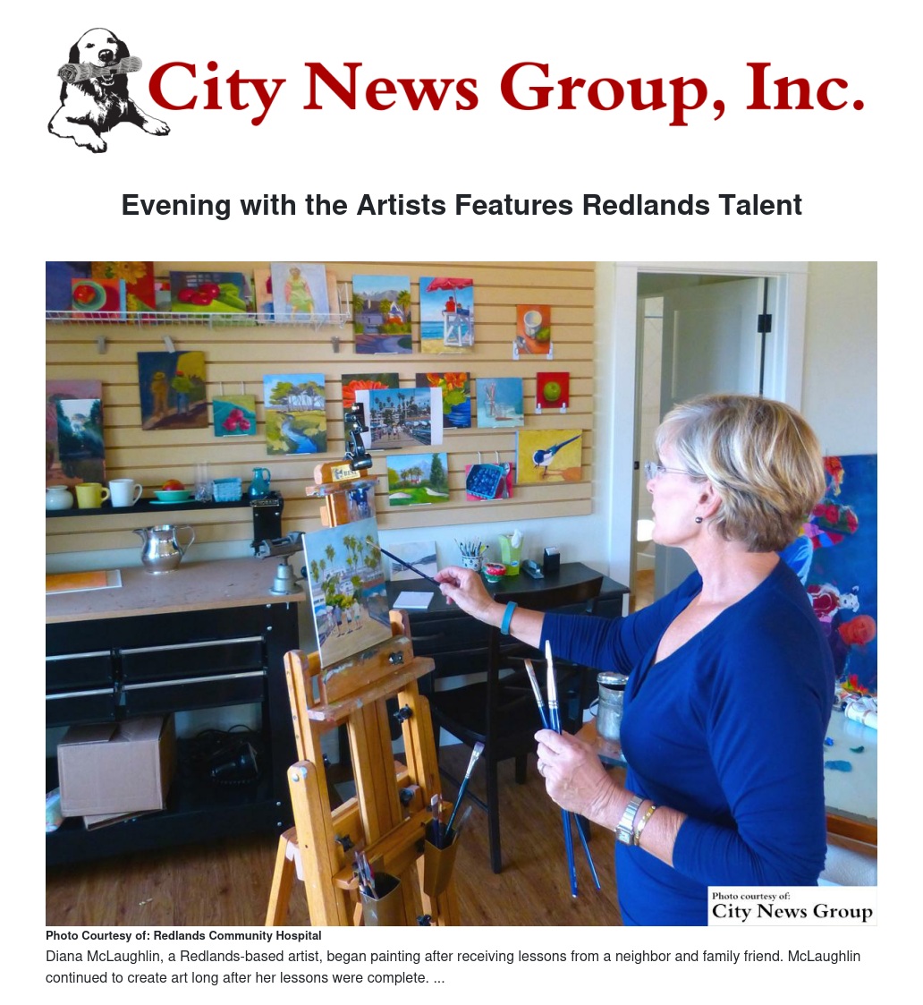 The beautiful works of art lining the walls of Redlands Community Hospital inspired 29-year Redlands resident Diana McLaughlin to learn more about how they were acquired, which resulted in her joining RCH Foundation’s art program committee. This year, McLaughlin participated as one of the featured artists showcasing her works at the annual Evening with the Artists, hosted by the Redlands Community Hospital Foundation, on the evening of April 24.