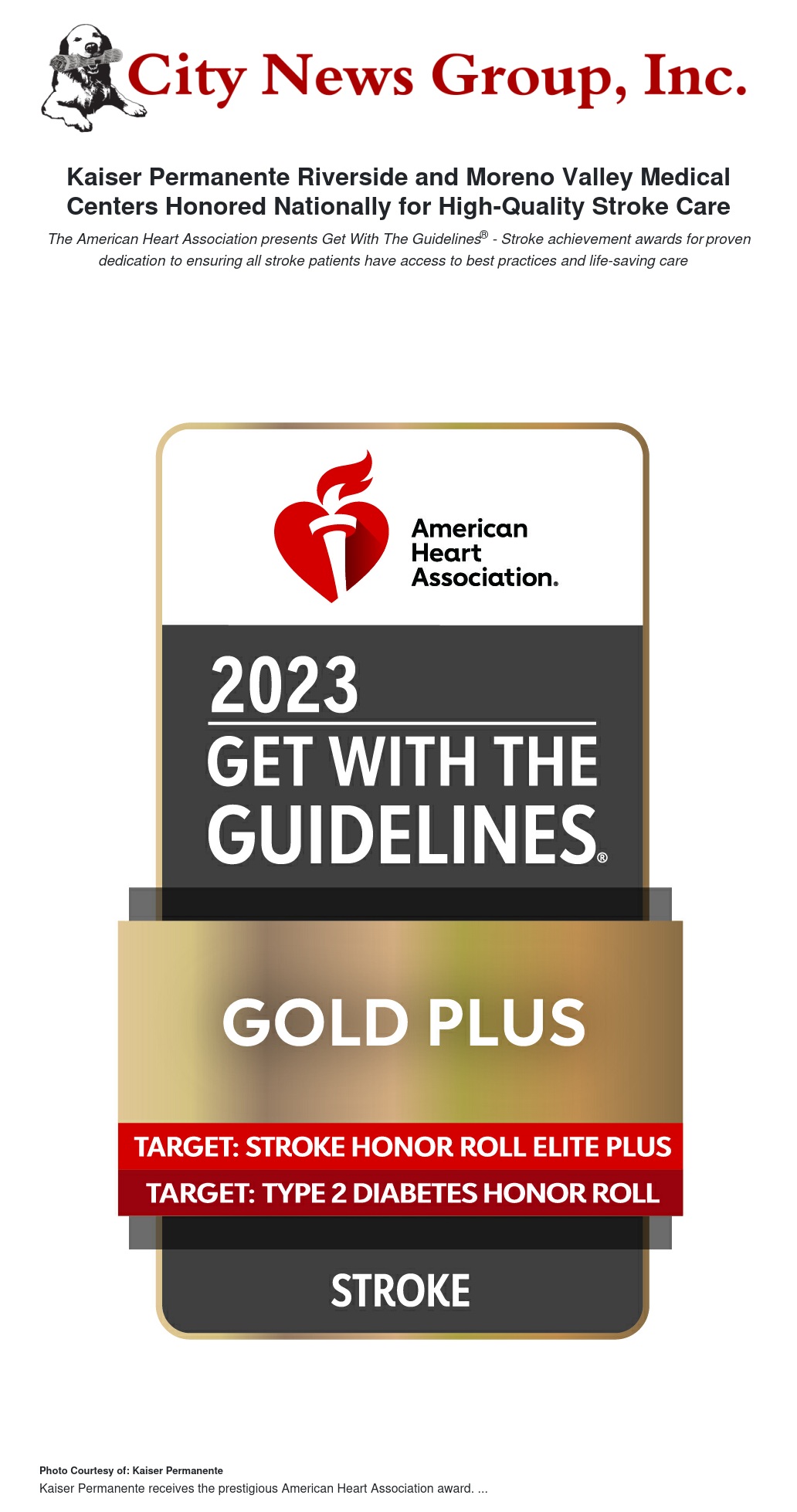 Kaiser Permanente Riverside and Moreno Valley Medical Centers Honored Nationally for High-Quality Stroke Care by Allison Sundman - City News Group, Inc.