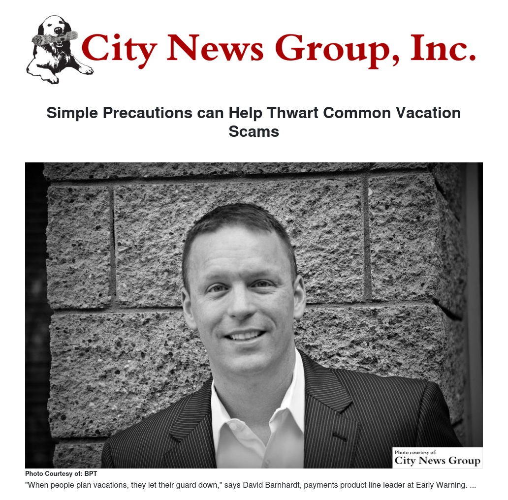 "When people plan vacations, they let their guard down," says David Barnhardt, payments product line leader at Early Warning, an Arizona-based fraud prevention company. "Fraudsters know this, and they have a whole bag of tricks created specifically for people in a vacation frame of mind."