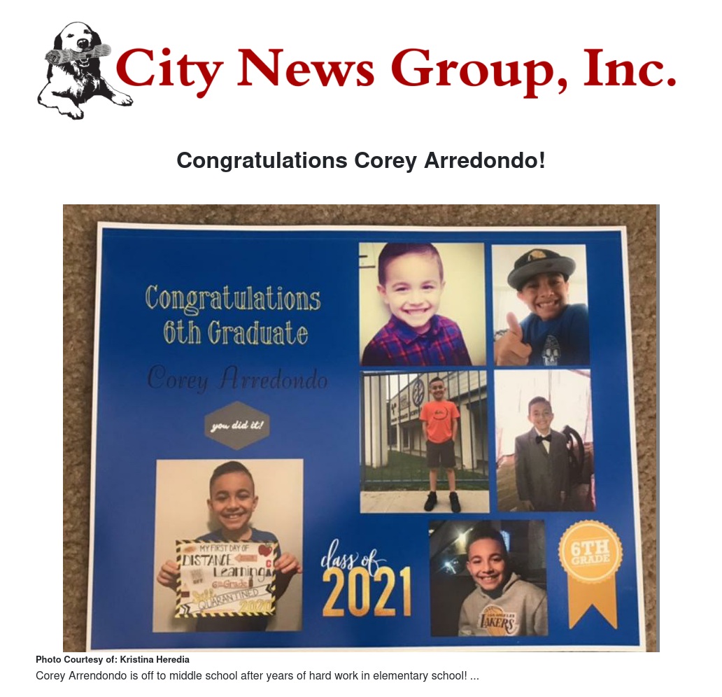Congratulations Corey Arredondo! by - City News Group, Inc.