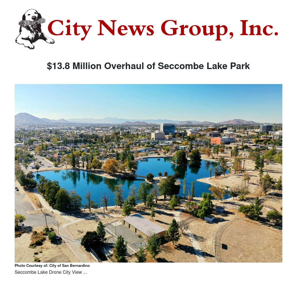 The San Bernardino City Council has approved $13,792,332.00 to renovate Seccombe Lake Park, including a $10.5 million construction contract to Landscape Support Services of North Hollywood California. The project is expected to revitalize the Park with new amenities and to restore and upgrade the existing infrastructure.