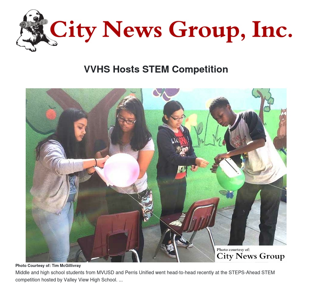 Middle and high school students from MVUSD and Perris Unified went head-to-head recently at the STEPS-Ahead STEM competition hosted by Valley View High School.