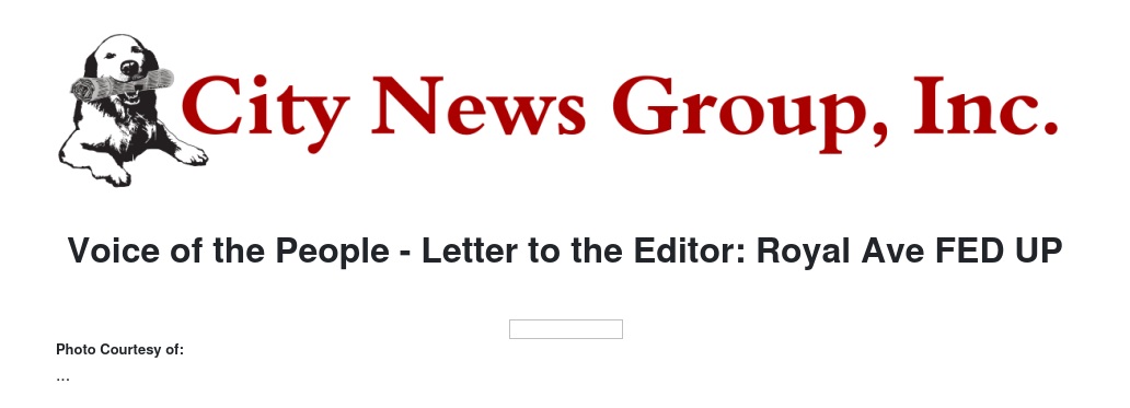 Voice of the People - Letter to the Editor: Royal Ave FED UP by Mitzi Young - City News Group, Inc.