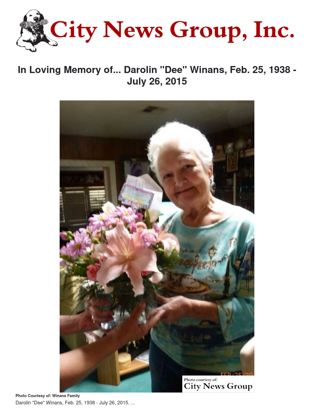 In Loving Memory of... Darolin "Dee" Winans, Feb. 25, 1938 - July 26, 2015