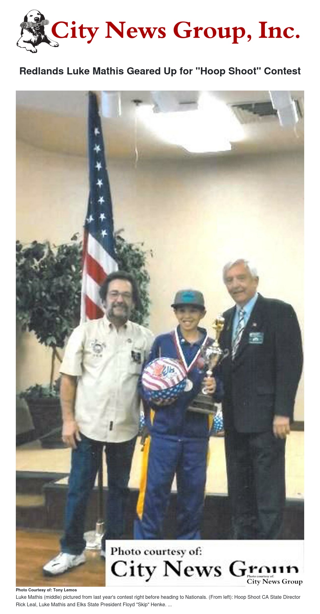 Mathis has been the California State Champion for the past two years, the Regional runner-up two years ago; he was the Regional Winner this past year and took fifth place in the entire Nation last year in the “Elks Hoop Shoot Contest.”