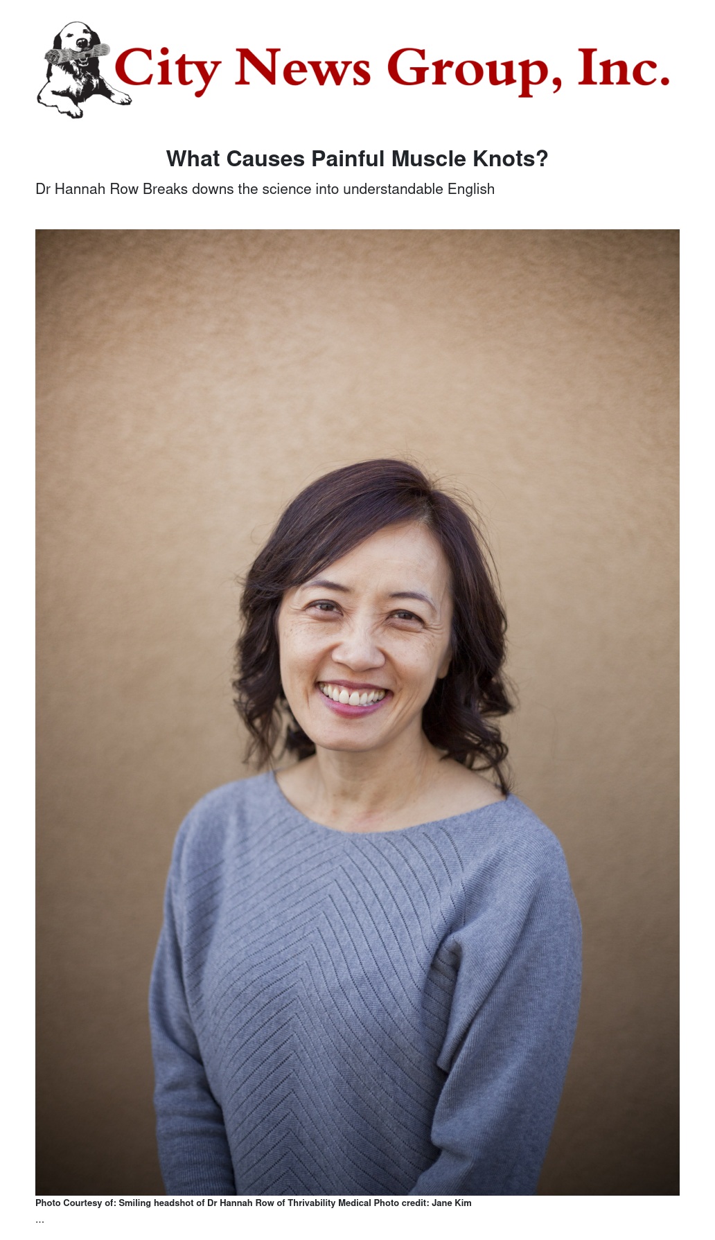 What Causes Painful Muscle Knots? by By Hannah Row, MD of Thrivability Medical - City News Group, Inc.