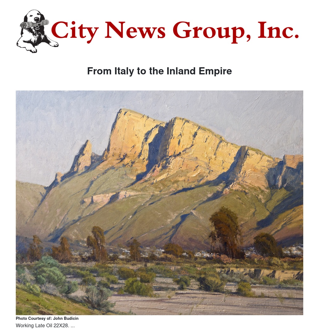 On Sunday, November 4, from 2 to 4 pm, the Loma Linda Cultural Arts Association* is delighted to present John Budicin, a devoted plein air artist who works in oils. Born in the beautiful seaside town, Rovigno D’Istria (that eventually passed from Italy to Croatia), Budicin emigrated to the US and California as an 11-year-old Italian. After completing his education, John became a commercial artist and freelance illustrator, turning to plein air fine art as a career when his employer moved out of California.