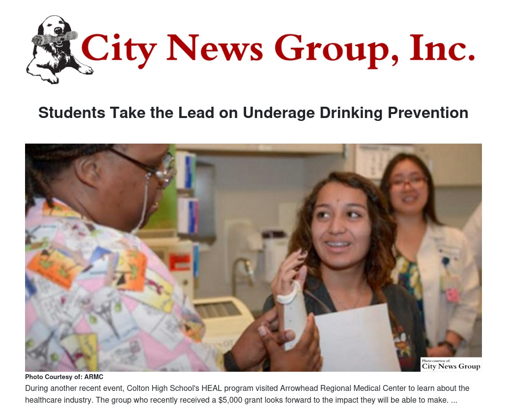 The Colton High School HEAL Program has been awarded a $5,000 grant to support Friday Night Live (FNL) youth leaders in the implementation of a variety of campaigns meant to directly combat underage drinking in their community.