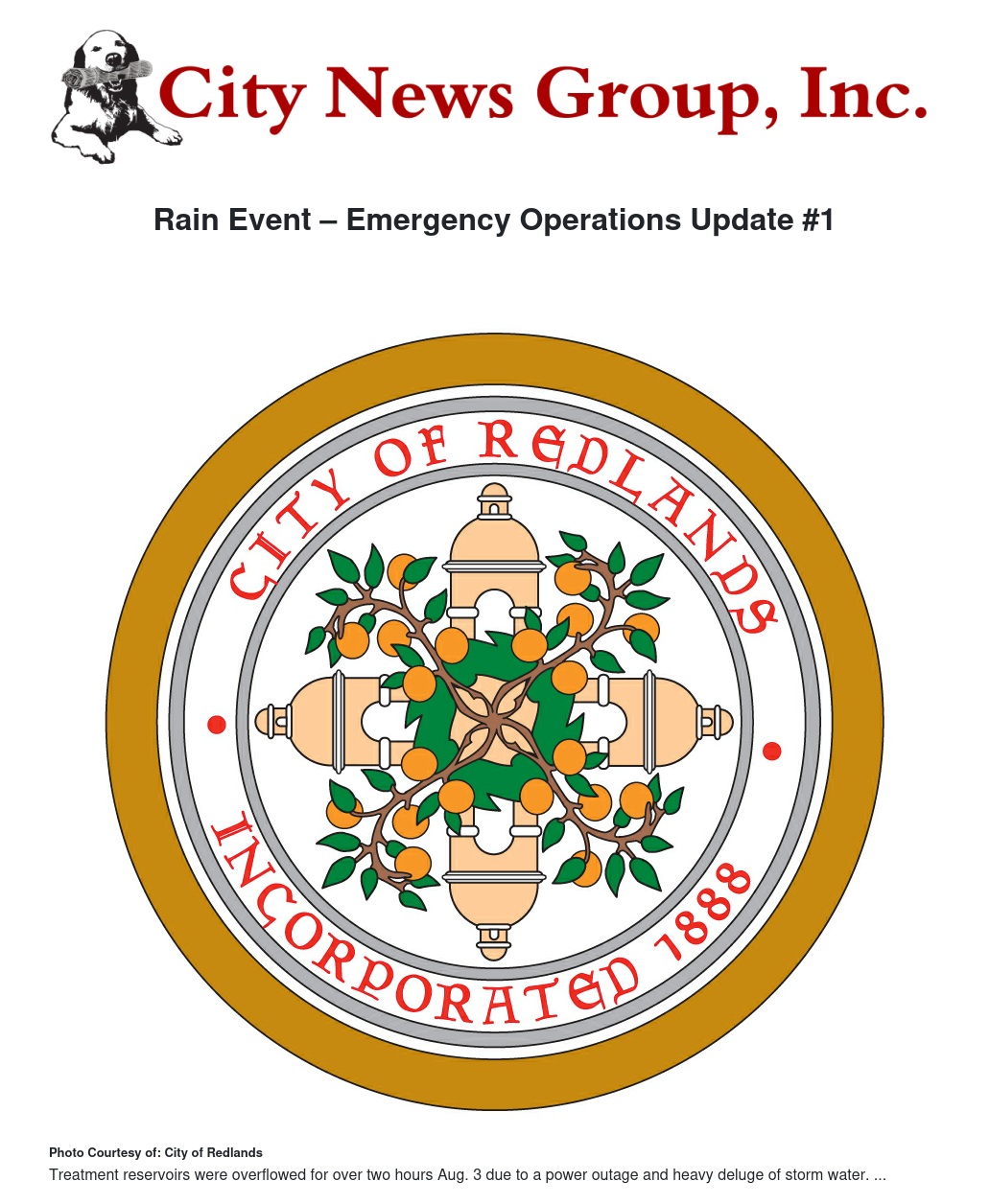 Officers, firefighters and personnel from the Redlands Police, Fire and Quality of Life departments and Emergency Operations Manager responded to a number of minor issues during a brief downpour Sunday, Aug. 3.