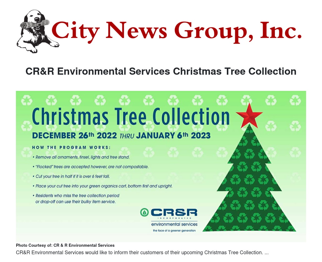 CR&R Environmental Services would like to inform all customers of our upcoming Christmas Tree Collection.
