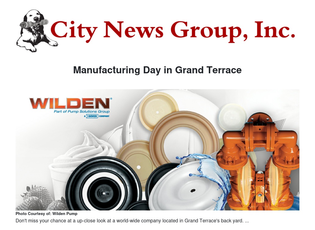 Wilden Pump and Engineering Company, a division of the Pump Solutions Group (PSG®) of Dover® Corporation, invites the community to join company team members at the company's headquarters in Grand Terrace for Manufacturing Day on Oct. 3 from 10 a.m. to 4 p.m.