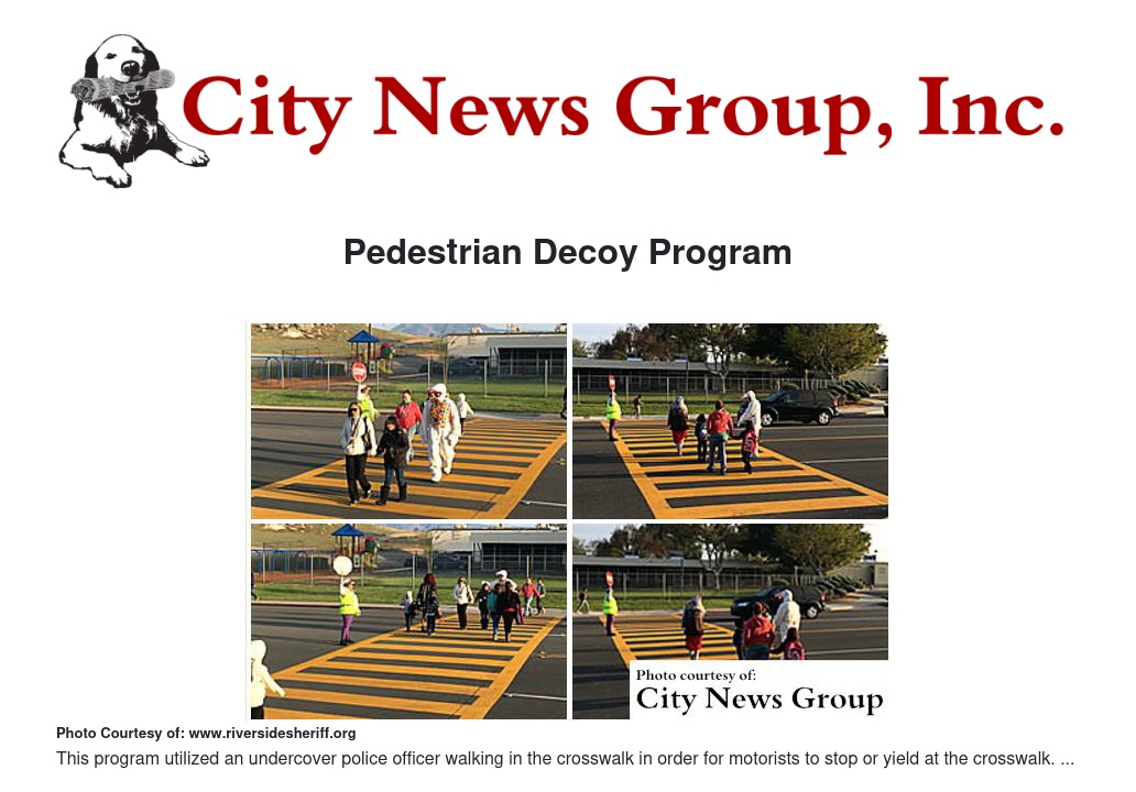 The Moreno Valley Traffic Team recently conducted a Pedestrian Decoy Program.