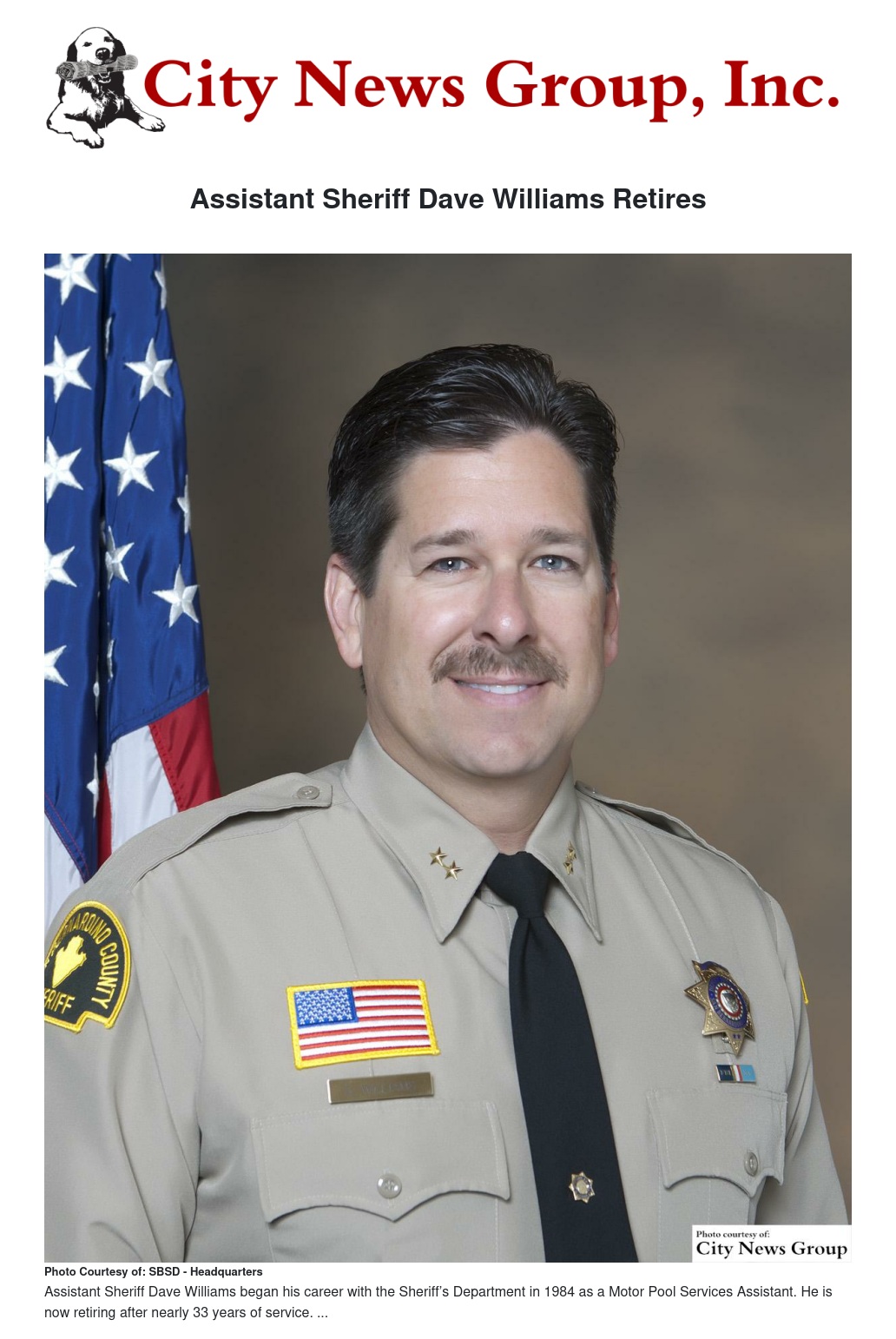 SAN BERNARDINO>> San Bernardino County Assistant Sheriff Dave Williams is retired on Friday, Jan. 6, 2017, following a 32 and a half year career with the department.