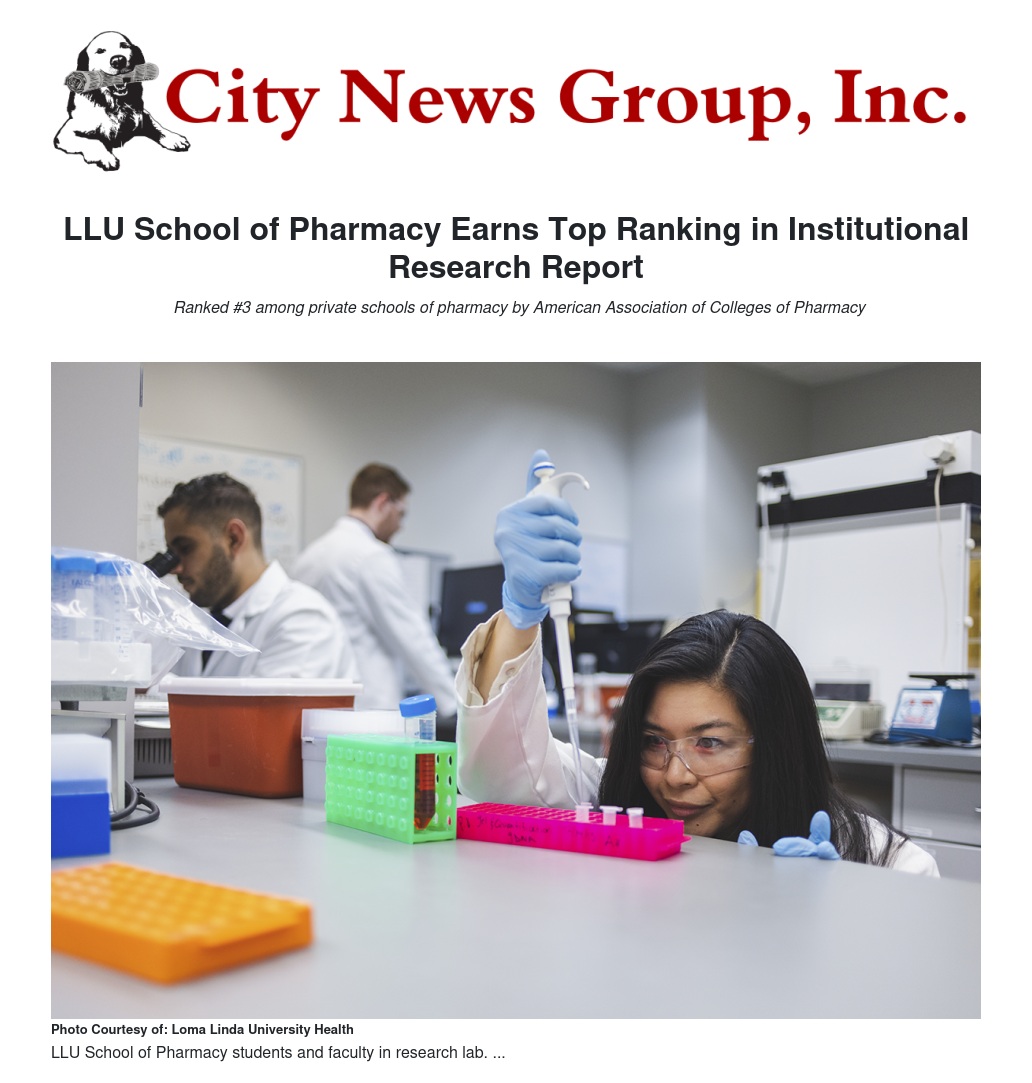LLU School of Pharmacy Earns Top Ranking in Institutional Research Report by Alma Arellano - City News Group, Inc.