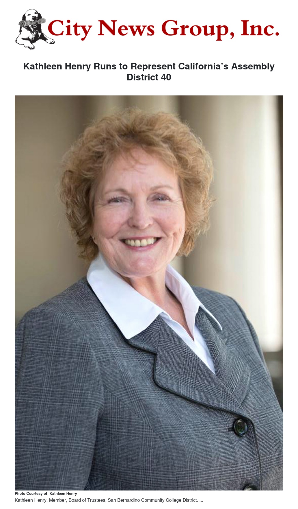 Kathleen Henry Runs to Represent California’s Assembly District 40