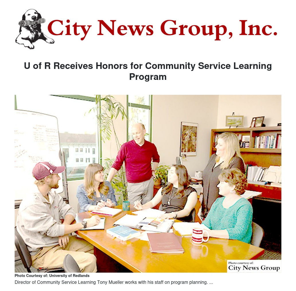 “The University of Redlands has made it a priority to engage students in off-campus experiences,” said Tony Mueller, director of Community Service Learning. “The Honor Roll with Distinction and the Carnegie classification both acknowledge that we are doing service in meaningful ways. From our outreach with Jasper’s Corner Homework Clubs and CHAMPS (College and High-School Alliance Mentoring Program and Service), our relationships through the University’s Community Service Activity and our work-study programs with K-12 and afterschool partnerships, service is an integral part of the undergraduate experience. It’s not just a sound bite, but the reality of our journey at the University. From the administration to the faculty and students, it’s built into the culture.”