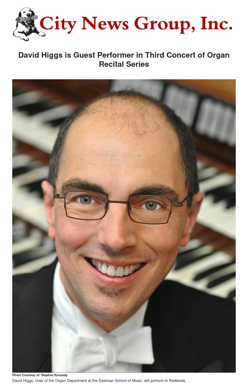 The University of Redlands will be hosting its third concert of the Organ Recital Series featuring David Higgs on Sunday, Jan. 12 at 3 p.m.