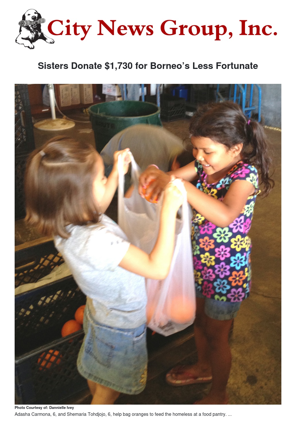 Their mother, Dannielle Ivey, said, “When they were born, I wanted to think of the world as a better place. I didn’t want them to be wasteful, and I wanted them to help make the world better. I’m really proud of them. They love [volunteering].” She noted that when the family helps at local food pantries, the girls “never want to leave until everything is done.”
