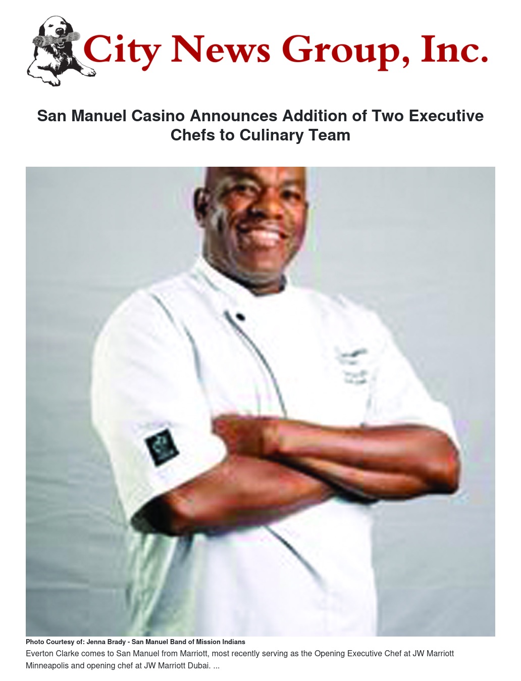 Everton Clarke previously worked in executive culinary roles at JW Marriott properties – most recently as the Opening Executive Chef at JW Marriott Minneapolis and opening chef at JW Marriott Dubai. He will lead all San Manuel Casino culinary staff toward preparing and presenting food with best-in-class service. In his role, Clarke will create and implement menus across the Casino’s various dining choices based on current food trends and regional tastes, seasonality, and concepts. Born in Jamaica and raised in the UK and Connecticut, he received his Bachelor of Science in Food Service Management from Johnson and Wales University in Providence, R.I., and his Associate Degree in Hotel/Restaurant Management from Norwalk Community College in Norwalk, Conn.