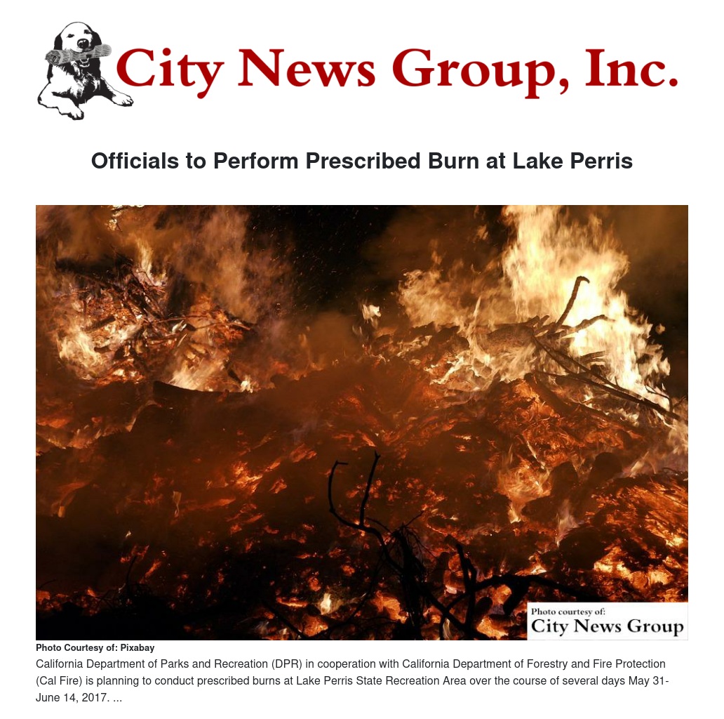 Officials to Perform Prescribed Burn at Lake Perris by Malika Miller - City News Group, Inc.