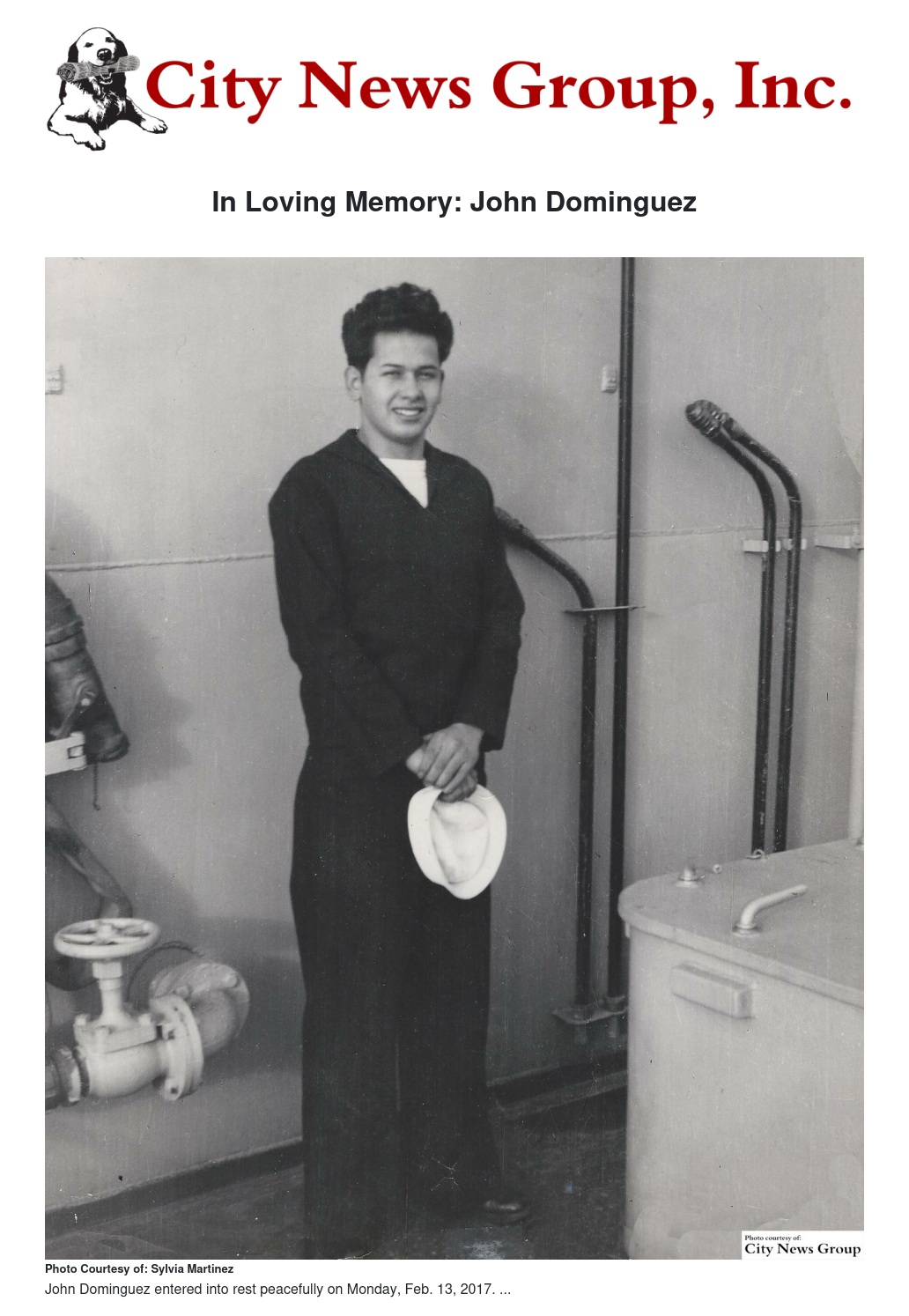 MORENO VALLEY>> John Dominguez entered into rest peacefully on Monday, Feb. 13, 2017. Born on June 12, 1934. Beloved son of his late parents Julia and Seferino Dominguez. John was born in Carlsbad, New Mexico and raised in Artesia, New Mexico.