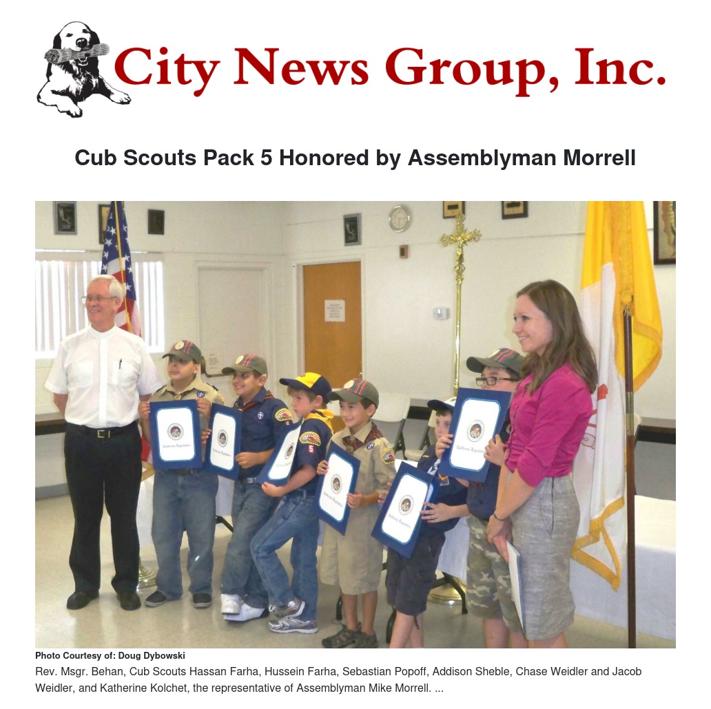 Cub Scouts Pack 5 Honored by Assemblyman Morrell