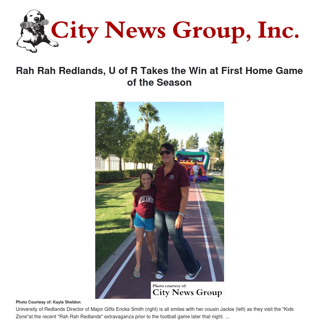 University of Redlands’ Director of Major Gifts Ericka Smith brought some of her family to have a good time and to help cheer on the Bulldogs at their first home game of the season.