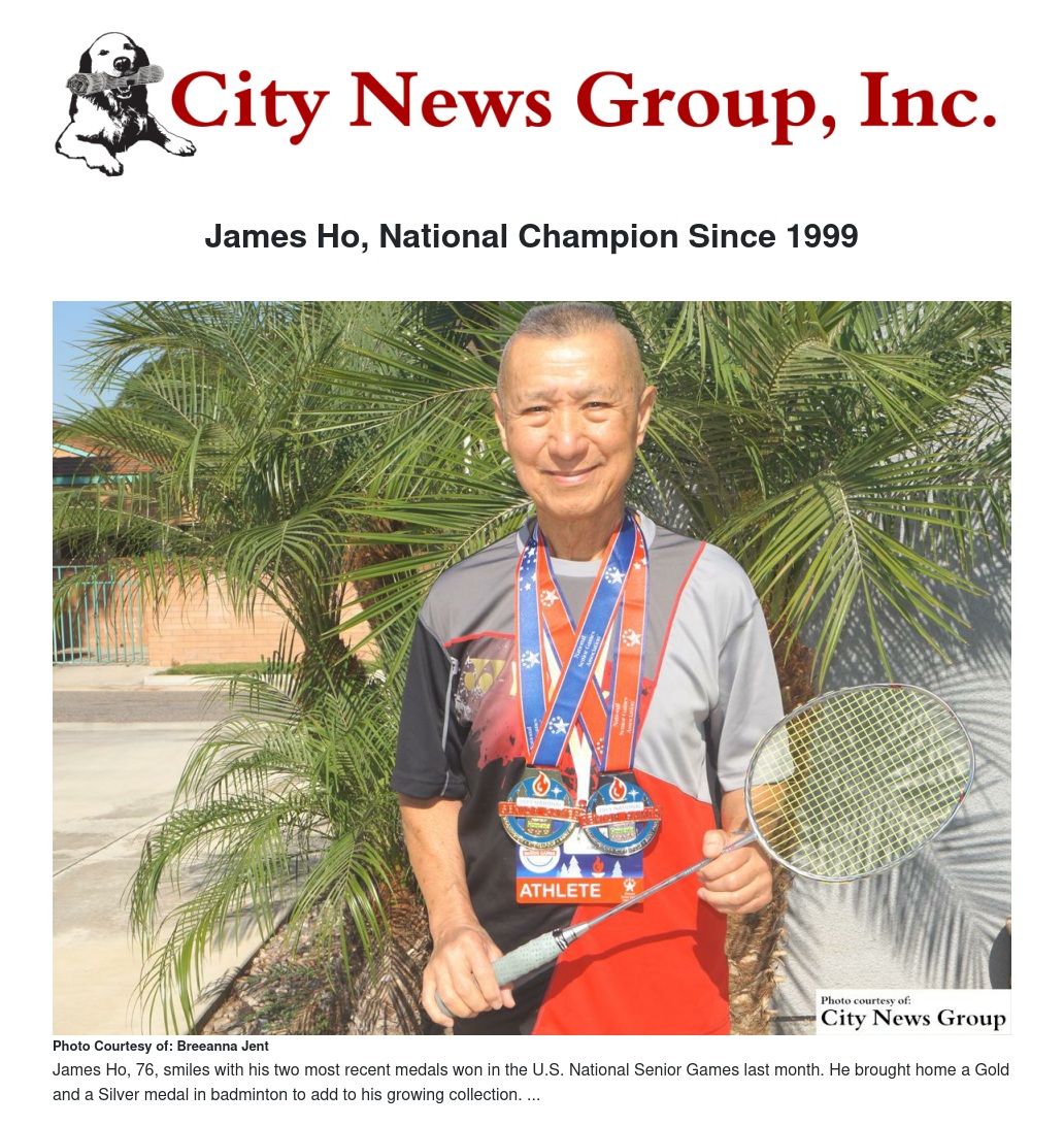 Since 1999, Ho has attended and participated in the U.S. National Senior Games and never fails to bring home a medal for his outstanding accomplishments in badminton.
