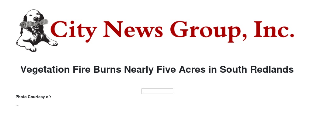 Vegetation Fire Burns Nearly Five Acres in South Redlands