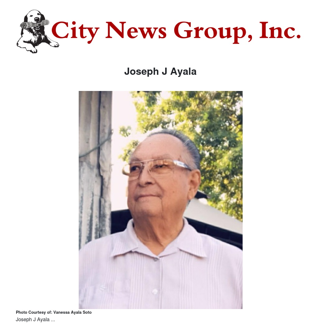 Joseph is survived by his loving Children, Grandchildren and Great- Grandchildren. His Daughters Virginia Rodriguez, Sarah Perez, his son-in-law John Rodriguez, his Son Joseph M Ayala and his grandchildren Johnny, Joseph, Jacob, Benjamin, Carilyn, Elaina, and Olivia. He will be deeply missed by his family, friends, and all who knew him.