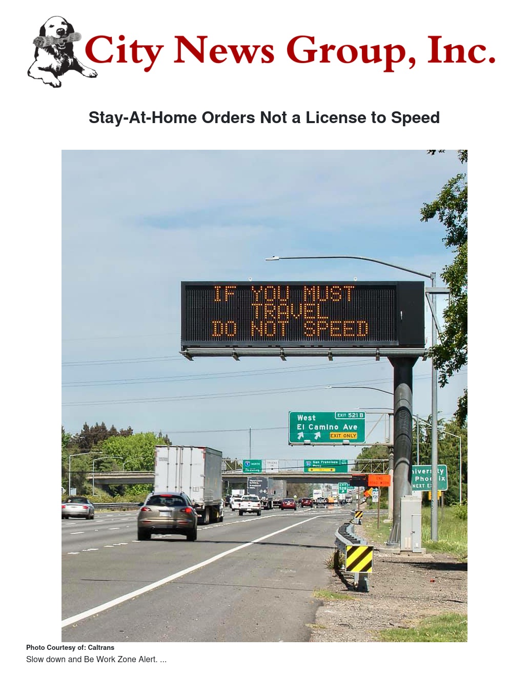 Caltrans announced today a joint effort with the California Highway Patrol (CHP) and the California Office of Traffic Safety (OTS) to urge drivers in the state to slow down given a recent 87% increase in citations for speeding in excess of 100 mph that coincides with decreased traffic volumes during the COVID-19 pandemic.