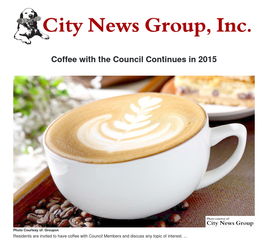The monthly Coffee with the Council was begun in February 2011 as part of the City’s continuing efforts to increase interaction with residents and promote transparency in City affairs.