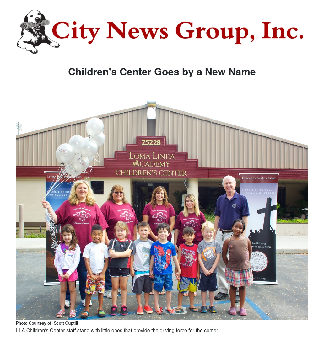 The Loma Linda Children’s Center has a new name: The Loma Linda Academy Children’s Center.