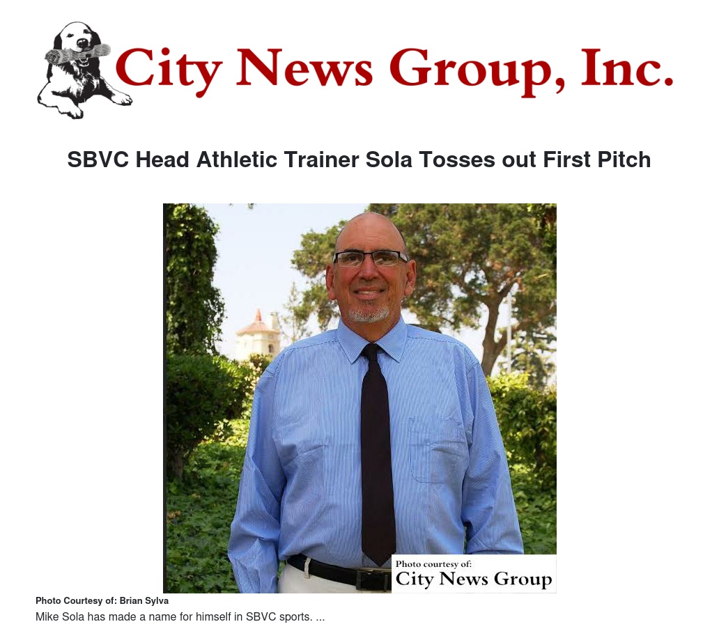 SBVC Head Athletic Trainer Sola Tosses out First Pitch