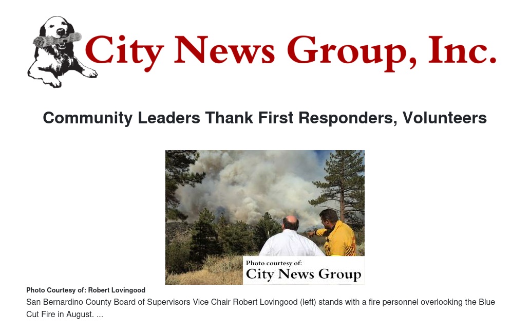 With the outbreak of the Blue Cut Fire last week, Supervisor Lovingood met with impacted residents, first responders and volunteers, in addition to frequent briefings and observation tours of the fire zone.