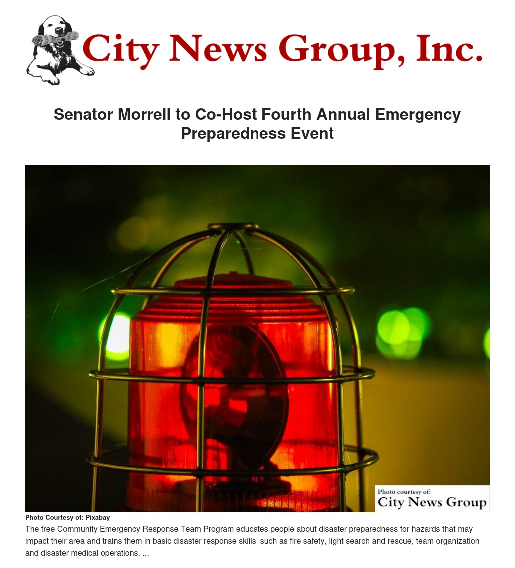 Senator Morrell to Co-Host Fourth Annual Emergency Preparedness Event