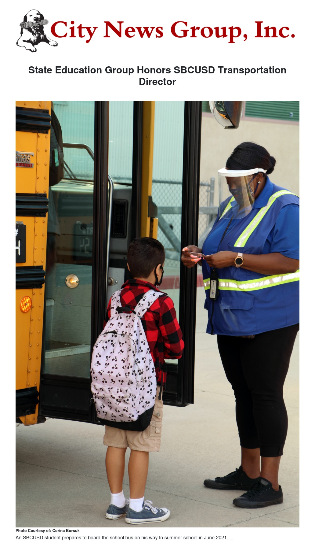 State Education Group Honors SBCUSD Transportation Director by Summer Clark - City News Group, Inc.