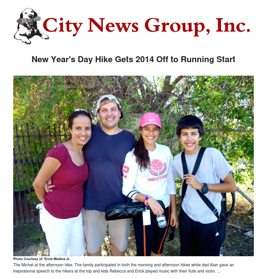 Hikers of all ages from Grand Terrace and nearby communities of Loma Linda and Redlands, came out for the event. Hikers made the just-over two-mile hike to the top of the mountain, where they then listened to inspirational speeches about making resolutions and ended the hike with a sparkling cider toast. A new feature this year was a musical performance by sibling duo Rebecca and Erick Michel on the flute and the violin, respectively.