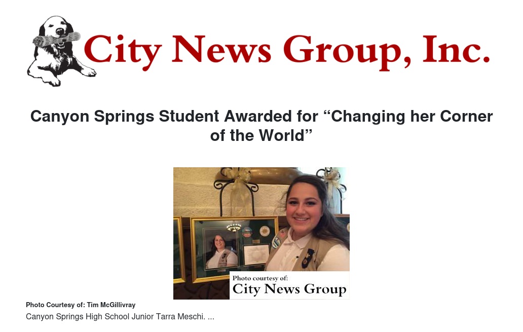 Tarra Meschi, a junior at Canyon Springs, recently earned the highest recognition in Girl Scouting: The Gold Award.