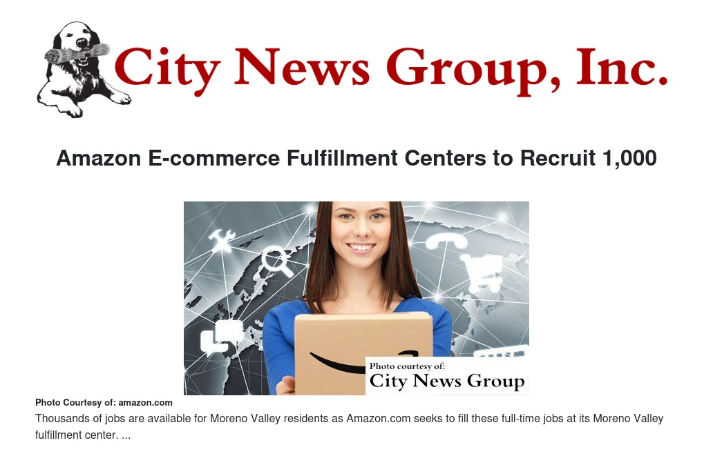 Amazon has announced that it is seeking applicants for 1,000 full-time positions at its fulfillment centers in Moreno Valley, alongside San Bernardino and Redlands to meet growing customer demands.