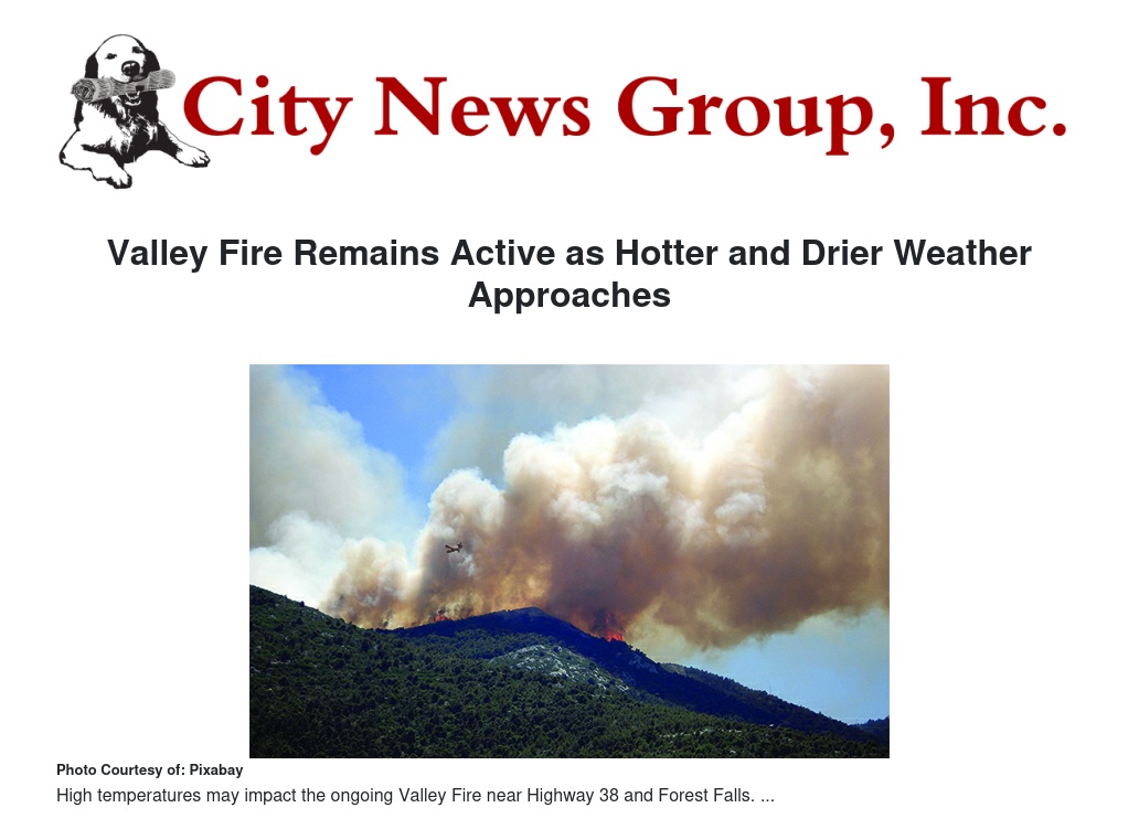 Valley Fire Remains Active as Hotter and Drier Weather Approaches by Zach Behrens - City News Group, Inc.