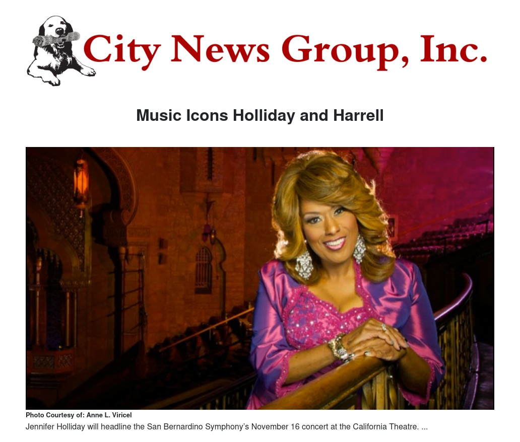 “November’s concert reaches into the heart of nearly every family in the Inland Empire,” added Maestro Parnther. “Jennifer Holliday and Lynn Harrell are two world famous and beloved musical icons that bookend a concert filled with hope and beauty. We can’t wait to perform for our community!”
