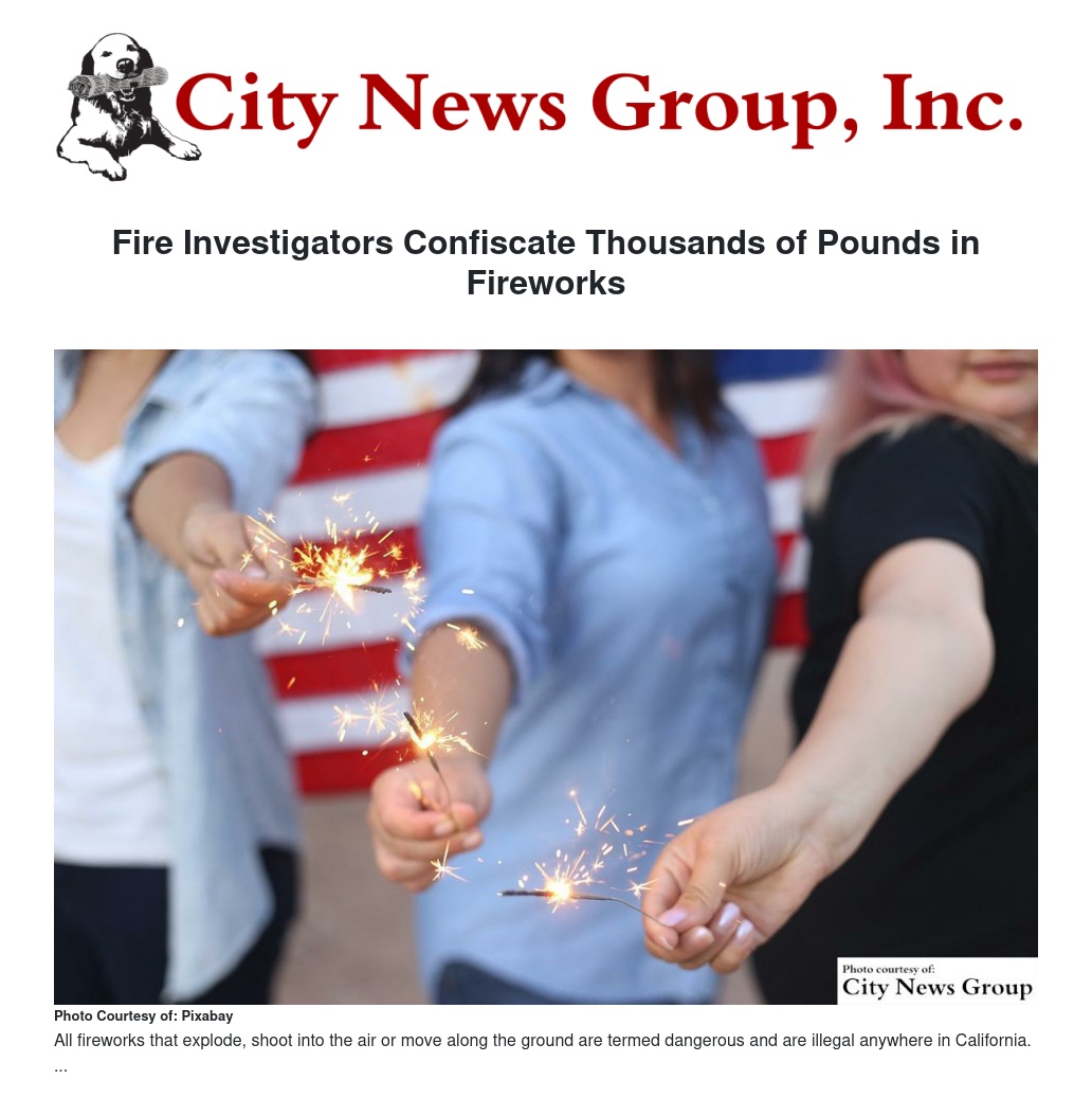 SAN BERNARDINO >> Over 25,000 pounds of illegal fireworks were confiscated by the San Bernardino County Fire Department Office of the Fire Marshal in June. Seven days of operations resulted in San Bernardino County Fire Investigators issuing 116 citations, totaling $145,000 in fines.