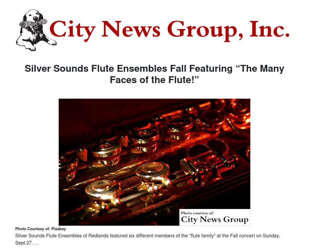Silver Sounds Flute Ensembles of Redlands will be presenting a Fall concert on Sunday, Sept. 27 at 3 p.m. at the San Manuel Band of Serrano Indians Gathering Hall at the Dorothy Ramon Learning center, 127 N. San Gorgonio Avenue, in Banning.