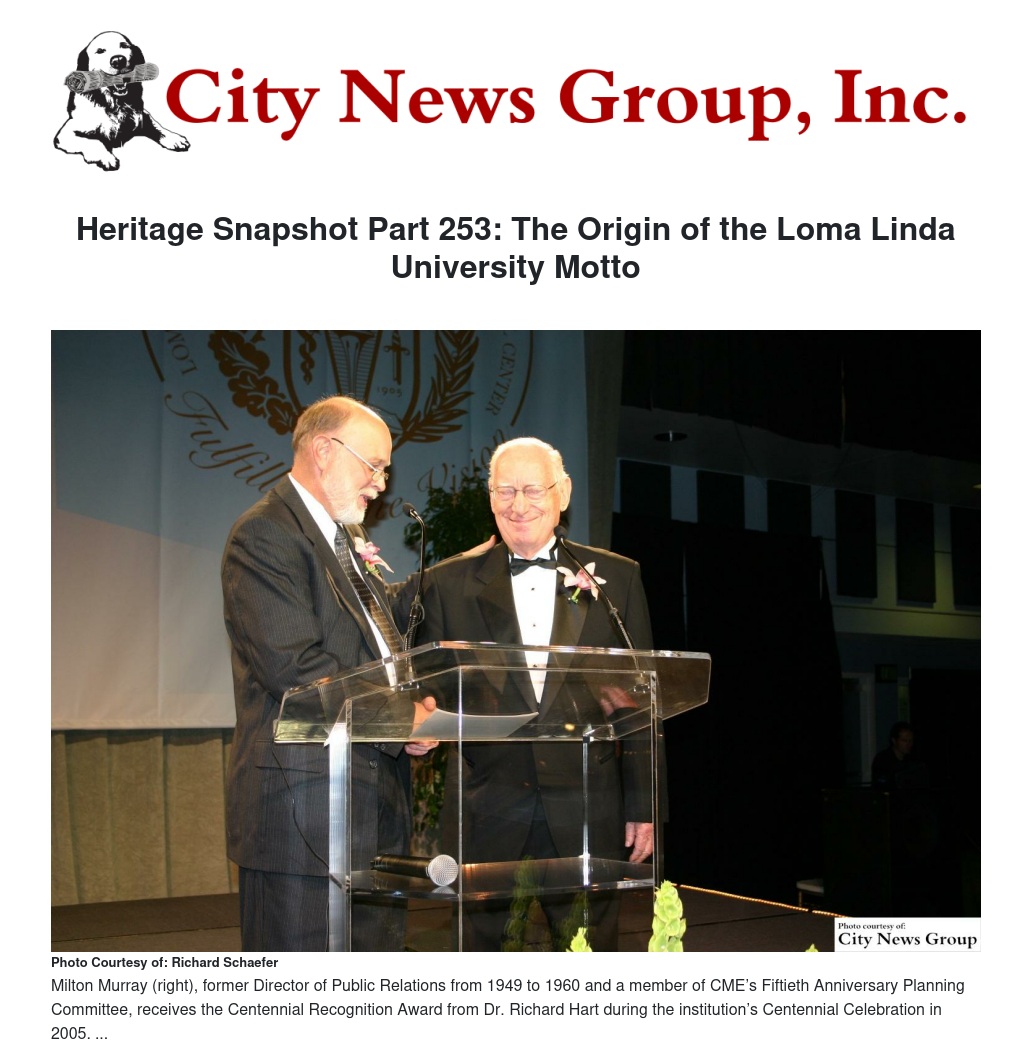 Heritage Snapshot Part 253: The Origin of the Loma Linda University Motto